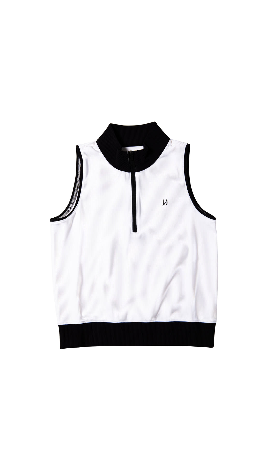 Discover our new sleeveless mock neck tank “Billie”. Made from stretchable crimp fabric, this top offers a relaxed fit and breathability for ultimate comfort during workouts. With a waistband and with high neck collar with a zi...